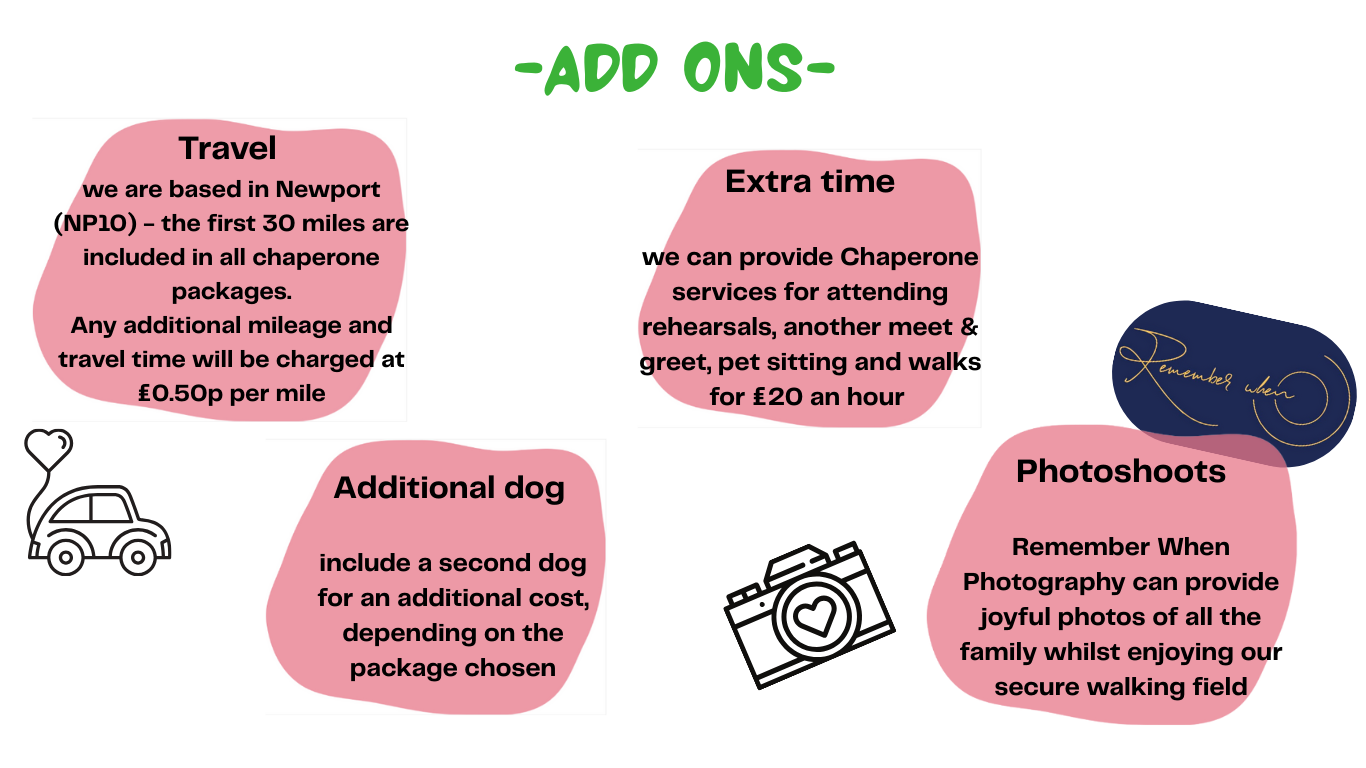 Every dog is different, and so we offer tailored packages, that cater for a range of needs for your special event in a professional and compassionate manor.